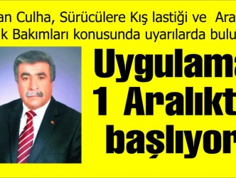 ticari taksilerde her yıl 1 Aralık ile takip eden yılın 1 Nisan tarihleri arasında kalan dört aylık dönemde kış lastiği kullanılmasının zorunlu olduğunu belirten Başkan Culha, zorunluluğun sadece ticari araçlar için olduğunu, ancak tüm araçların kış lastiği uygulamasına hassasiyet göstermesi gerektiğini ifade etti. Yönetmelik ve buna bağlı genelgelerin kış aylarındaki emniyetli sürüş ve trafik kazalarının azalması noktasında çok önemli bir adım olduğunu belirten Culha, açıklamasında şunları kaydetti:“Ülkemizde tescil edilmiş olsun veya olamasın şehir içi veya şehirlerarası karayollarında seyreden, kamyon, çekici, tanker otobüs, minibüs, kamyonet ve A türü yetki belgelerine kayıtlı otomobillerde (ticari taksi) her yıl 1 ARALIK ile takip eden yılın 1 NİSAN tarihleri arasında kalan dört aylık dönemde Kış Lastiği kullanılması zorunludur. Yol kenarı denetimlerinde yukarıda belirtilen araçlardan Kış lastiği takmayanlara 835,00 TL para cezası uygulanacak olup, araçlara Kış lastiği takana kadar trafikten men edilecektir” dedi. Öte yandan, Araçların denetiminin Bakanlığın yetkilendirdiği personelle Emniyet Genel Müdürlüğü, Jandarma Genel Komutanlığı, Gümrük ve Ticaret Bakanlığının sınır kapılarındaki birimleri ve belediye denetim birimlerince yapılacağını belirten yetkililer, kış lastiği takma zorunluluğunun sona erdiği tarihin, hava şartlarına bağlı olarak Bakanlıkça 1 ay uzatılabileceğini hatırlattılar. Ayrıca, uygulamayla kış şartlarına göre önlemini almayan, kış lastiği olmayan araçların yolu kapatmasını ve insanların mağduriyete uğramasını önlemenin amaçlandığını bildirdiler. Ekiplerin tedbirsiz, hazırlıksız yola çıkan araçları daha sıkı denetleyeceğini ve kış şartlarına uygun kar lastiği takmayan araçların yola devam etmelerine izin vermeyeceğini vurgulanırken, Kış lastikleri 7 derecenin altındaki sıcaklıklarda, ıslak, karlı ve çamurlu zeminlerde yaz lastiklerine oranla daha iyi yol tutuş ve yüksek güvenlik sağladığı belirtildi.