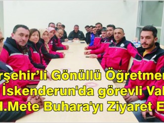 İl Millî Eğitim Müdürü Metin Alpaslan tarafından yolcu edilen öğretmenler, kurulan çadır kentlerde çocuklarımıza her türlü okul öncesi etkinliği yapacak ve depremin olumsuz etkilerini en aza indirmek amacıyla deprem bölgesine giden gönüllü öğretmenler İskenderun ilçesinde koordinatör vali olarak görev yapan Kırşehir Valisi Hüdayar Mete Buhara’yı ziyaret ettiler. Vali Buhara’ın talimatları doğrultusunda görevlerine başlayan gönüllü öğretmenlerimiz depremin olumsuz etkilerini en aza indirmek için gayret gösteriyorlar.(HABER MERKEZİ)